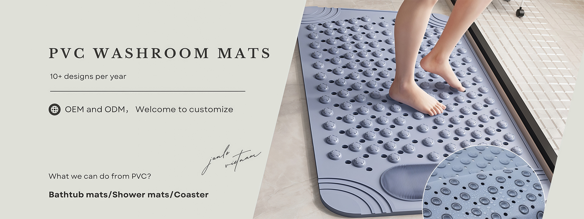 PVC washroom mats are critical for safety, any slip in the tub will cause catastrophic injuries. These PVC mats are easy to place at any position without decor conflict in the washroom.